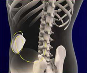 Dabei wird in der Lumbalgegend des Rückens ein Katheter in den intrathekalen Raum implantiert. An diesem Ort ist kein Rückenmark vorhanden und es besteht deshalb kein Verletzungsrisiko. Der Katheter wird in diesem Raum bis zur notwendigen Höhe vorgeschoben, damit das Medikament am Rückenmark und an den Nerven deponiert werden kann, die für die Schmerzen oder die Spastizität verantwortlich sind. Der Katheter wird anschliessend an eine Pumpe mit einem Reservoir angeschlossen, die in der Bauchgegend unter die Haut implantiert wird. Mit dieser Pumpe werden die Medikamente in die Region des Rückenmarks und der Nerven geleitet, in welcher der Katheter platziert worden ist.